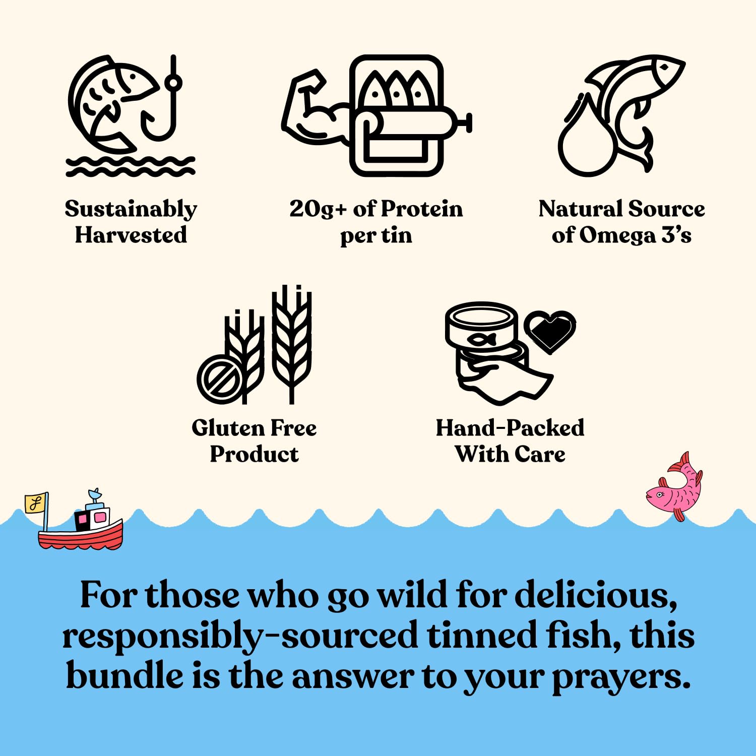 • Responsibly Sourced: Bringing you the best quality possible, our sardines are wild-caught off the coast of Cornwall, England in the only MSC-certified sustainable sardine fishery in Europe.