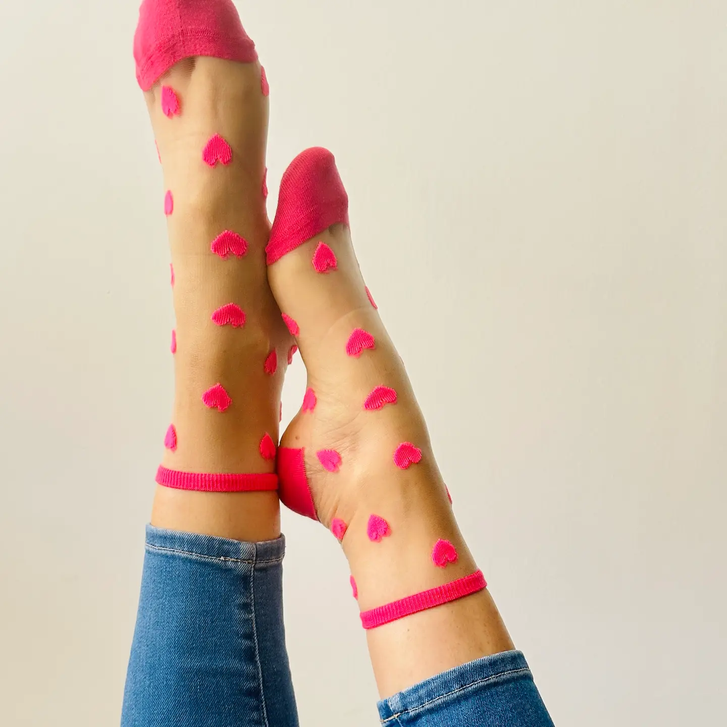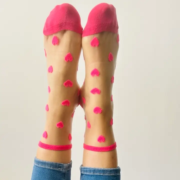 Laure Fancy Socks with Flashy Pink Hearts